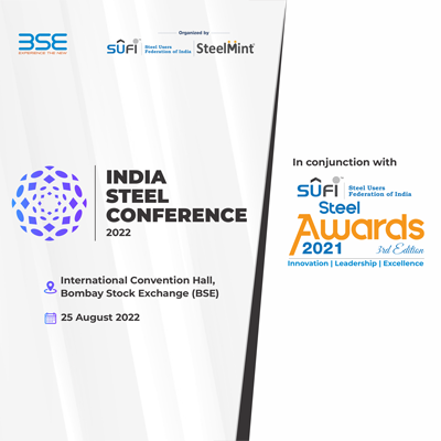 The sudden steel and iron ore export duty imposition in May set back the market. Prices started declining but still end-users are not buying, unsure when these will bottom out. Considering the geo-political risks, prices are expected to remain volatile for some time while demand is dull. But how will Indian end-users hedge their risks in a volatile market Other than the traditional markets of construction and auto etc, what are the emerging sectors that will expand steel demand in India?[/vc_column_text][vc_row_inner][vc_column_inner width=”1/2″][vc_single_image image=”111570″ img_size=”1200×600″][vc_column_text][/vc_column_text][/vc_column_inner][vc_column_inner width=”1/2″][vc_single_image image=”111571″ img_size=”1200×600″][vc_column_text][/vc_column_text][/vc_column_inner][/vc_row_inner][vc_row_inner][vc_column_inner width=”1/2″][vc_single_image image=”111572″ img_size=”1200×600″][vc_column_text][/vc_column_text][/vc_column_inner][vc_column_inner width=”1/2″][/vc_column_inner][/vc_row_inner][vc_column_text]Steel Users Federation of India (SUFI) and SteelMint will seek answers to these questions and a lot more in a jointly hosted conference, “The Indian Steel Conference 2022”[/vc_column_text][vc_column_text]